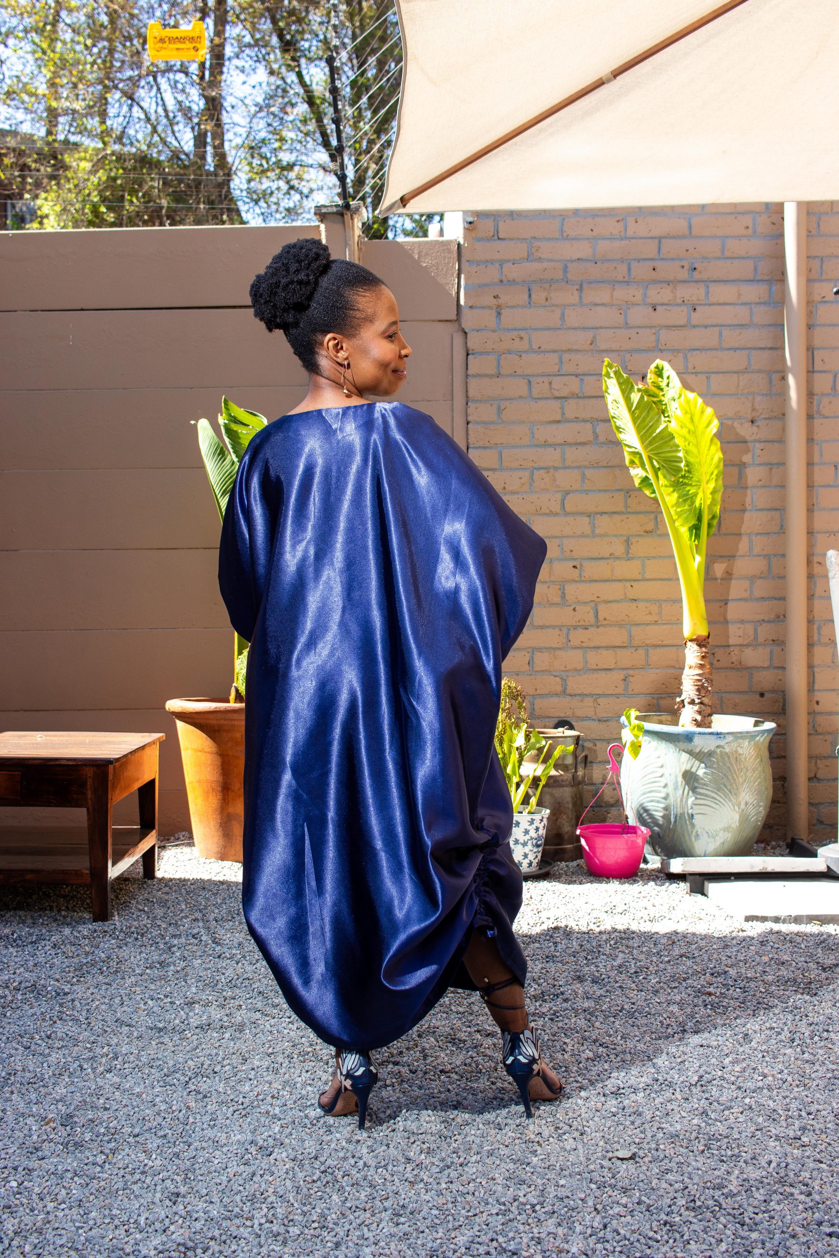 Introducing ‘Boitumelo’—a mesmerizing midi boubou dress crafted from the finest 100% Thai Silk, epitomizing the essence of timeless luxury and effortless sophistication.